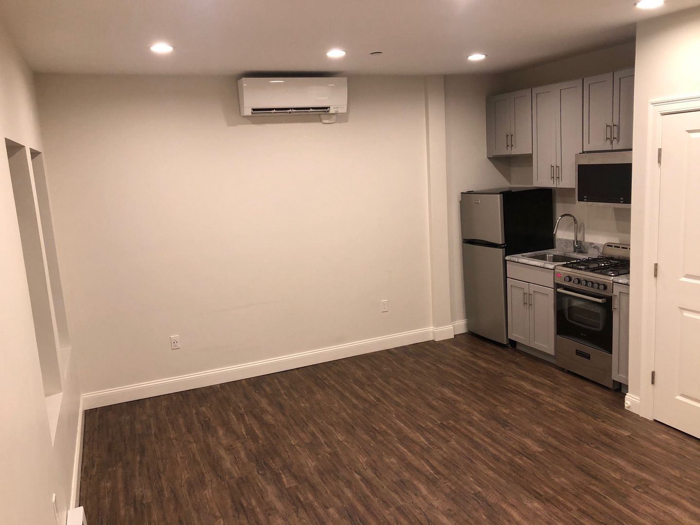 Second floor STUDIO apartment. The property is located in a great neighborhood right next to the Revere Beach MBTA train station (blue line), historic Revere Beach and close to many great restaurants and grocery stores. These units have recessed lighting, high ceilings and newly installed flooring throughout. The kitchens have custom cabinets, granite counter tops and brand new stainless steel appliances. The bathrooms have tile flooring and a stand-up tile shower. All studios have energy efficient heat pumps for air conditioning and heating. This property is completely pet-free and smoke-free. Laundry machines on site. One year lease minimum. Deposit is first, last, security and $100 key fee. Unit is elgible for ONE street parking permit only.